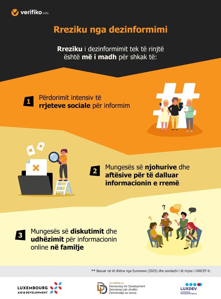 Dezinformimi në internet paraqet një rrezik të konsiderueshëm për të rinjtë/rejat, veçanërisht kur ata: